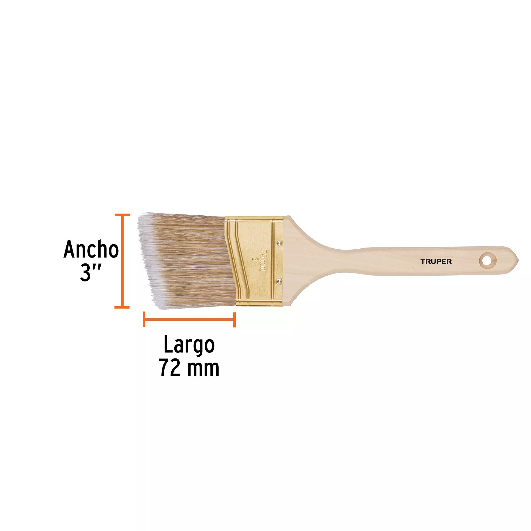 - Largo de cerdas expuestas de 72 mm (≈2.8") y ancho de 3", lo que permite una buena carga de pintura y cobertura rápida en superficies medianas.