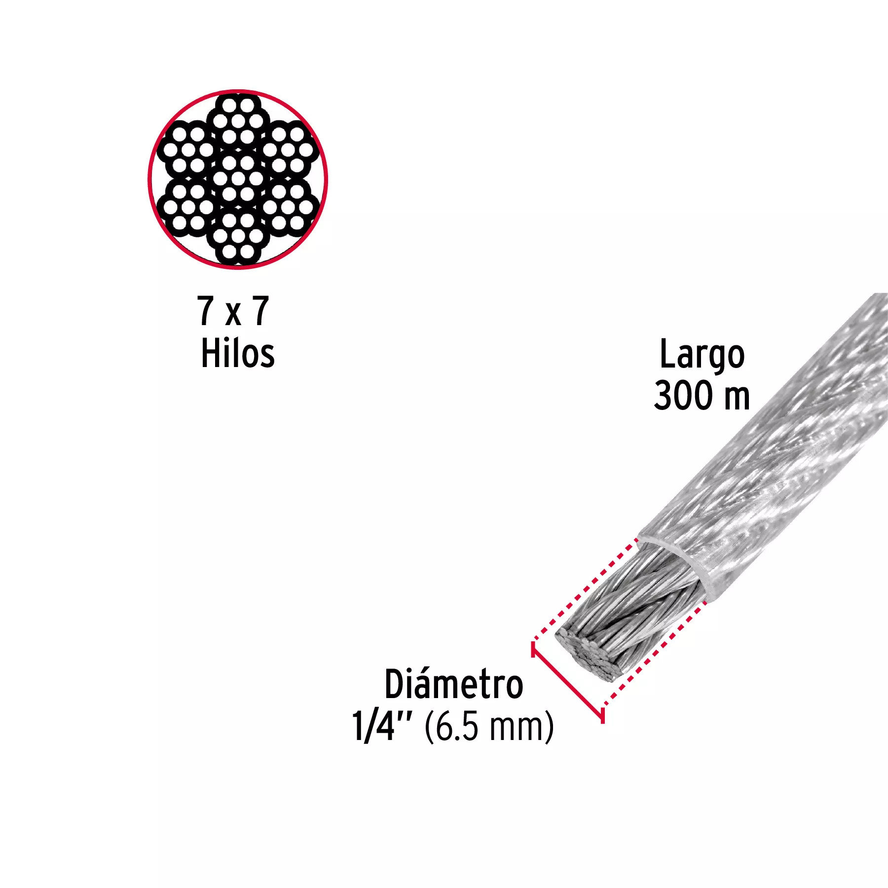 Una de las características más destacadas de este cable es su calidad superior. Fabricado con acero 7x7, este cable no solo garantiza una resistencia excepcional, sino que también está recubierto con PVC, proporcionándole una capa adicional de protección contra la corrosión y el desgaste. Este recubrimiento asegura que el cable mantenga su integridad estructural incluso en condiciones ambientales adversas, haciendo de él una opción duradera y confiable para cualquier usuario.