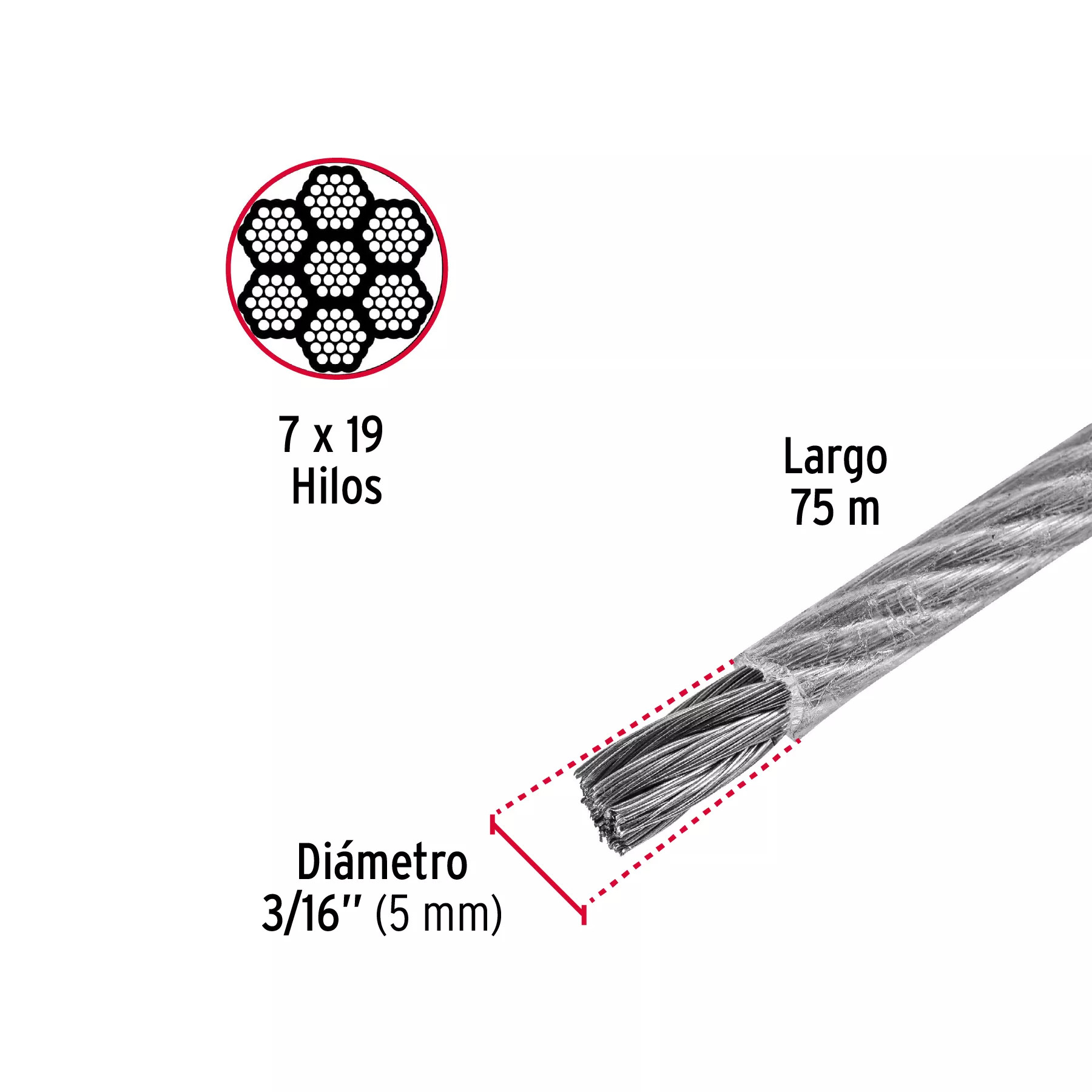 - Trenzado 7x19: Proporciona una flexibilidad superior que permite un manejo más fácil sin sacrificar resistencia.