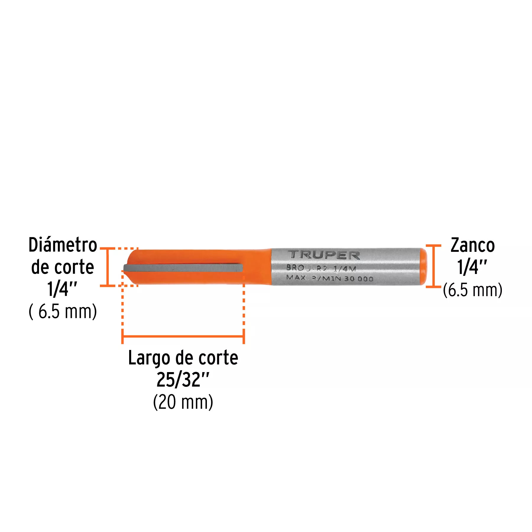 "Con la Broca para router, recta 2 filos, 1/4", mediana, Truper de FERRETODO, obtienes una solución duradera y eficaz para tus proyectos, con la confianza de un aliado profesional."