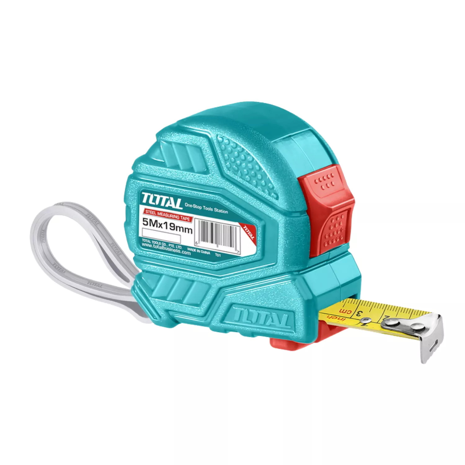 La cinta métrica TOTAL TMT34519 es una herramienta práctica y confiable, diseñada para profesionales y usuarios domésticos que requieren mediciones exactas y rápidas. Su longitud de 5 metros y ancho de cinta de 19 mm la hacen ideal para trabajos en obra, taller o hogar.
