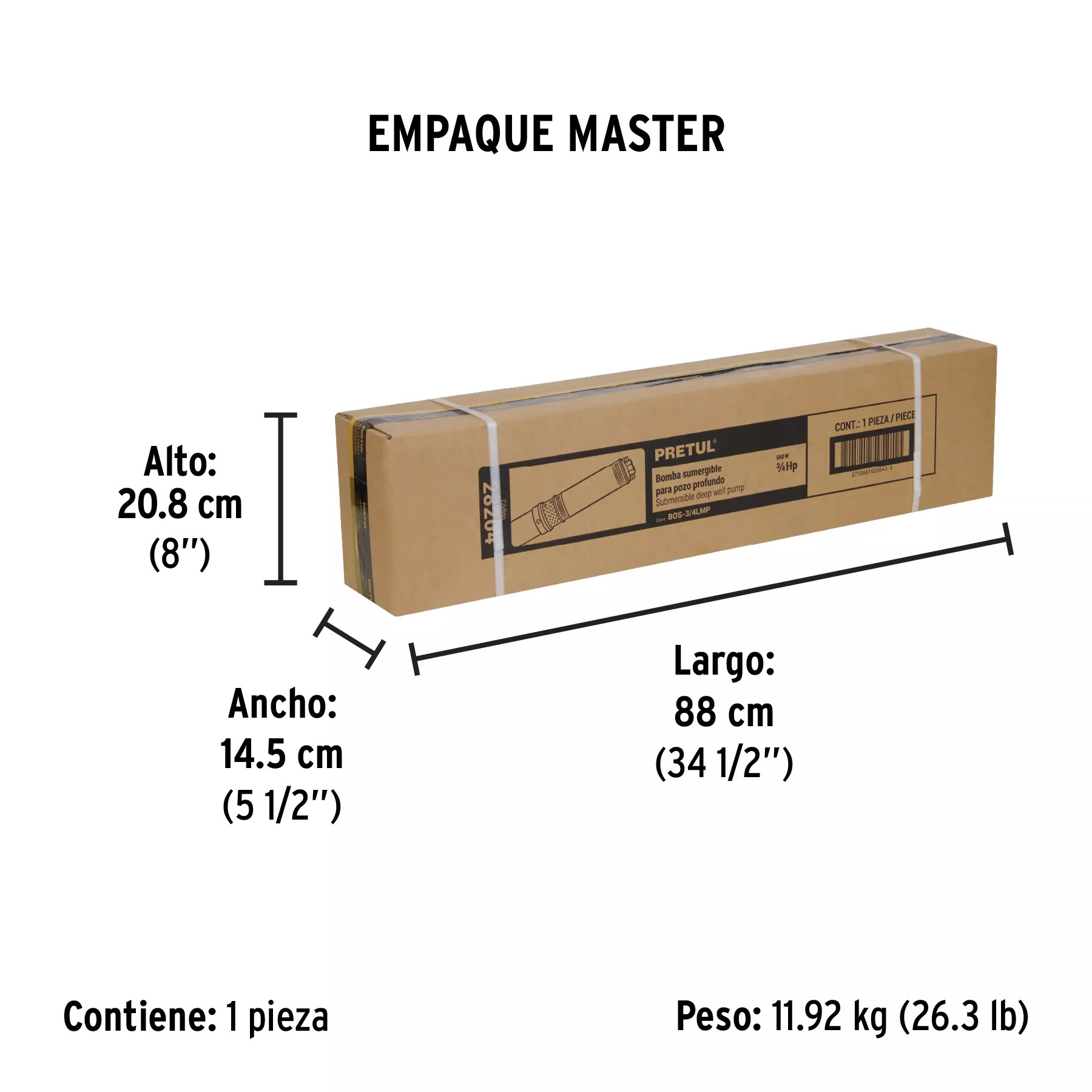 Presentamos la Bomba sumergible tipo bala de 3/4HP de uso agrícola, marca PRETUL y Truper, una solución diseñada para satisfacer las necesidades de productores y agricultores que buscan maximizar el rendimiento de sus actividades. Este producto es único por su capacidad para operar en condiciones exigentes, facilitando el riego y el drenaje en terrenos agrícolas. Resuelve el problema de la insuficiencia de agua en cultivos, mejorando la eficiencia en el uso de recursos hídricos y reduciendo costos operativos.