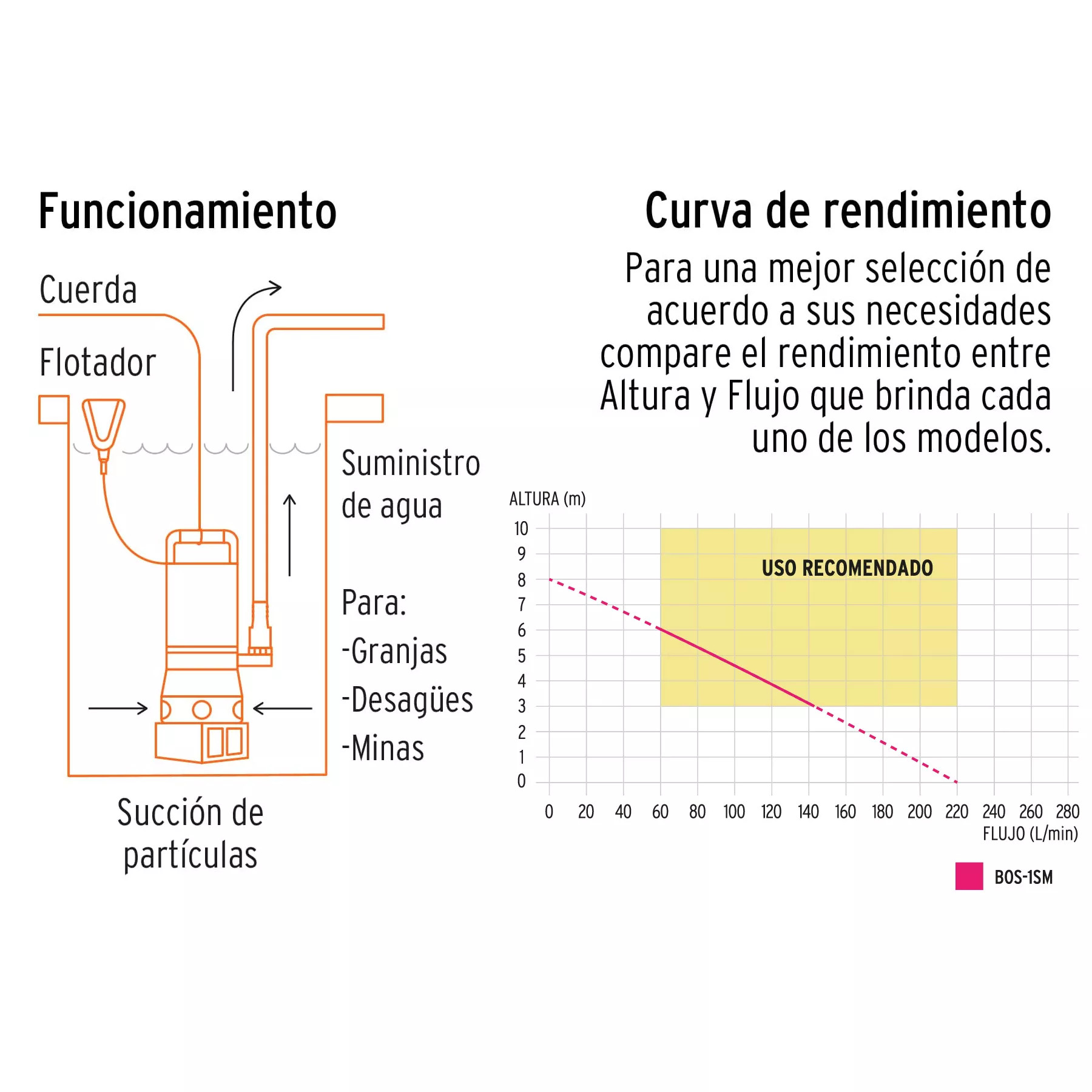 - Potencia de 1 HP: Ofrece un excelente caudal de agua, permitiendo el desagüe rápido y efectivo de espacios inundados, lo que resulta en una solución rápida para problemas de inundación.