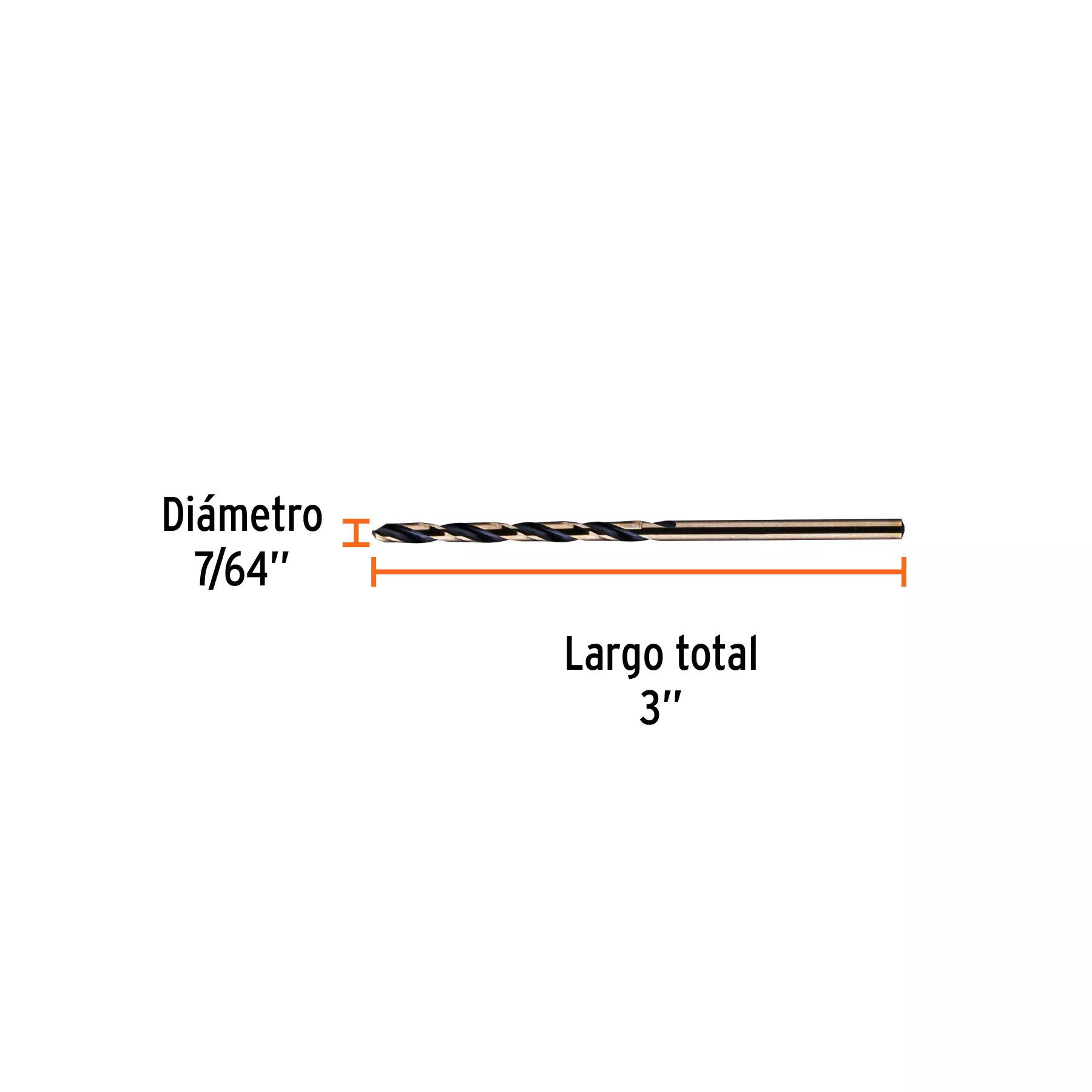 - Diámetro de 7/64": Ideal para perforaciones precisas en metal, permitiendo un ajuste perfecto para tornillos y pernos de tamaño adecuado, minimizando el riesgo de errores.