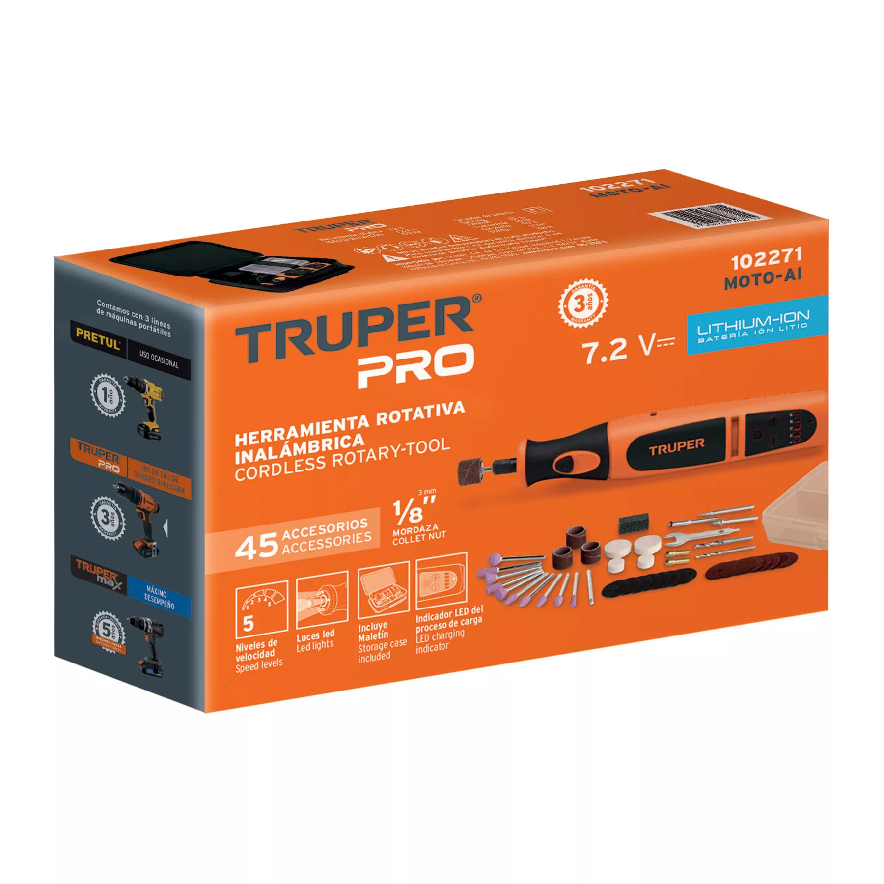 “Con la Herramienta Rotativa Inalámbrica 7.2 V de Truper, asegura resultados precisos y eficientes, respaldados por la calidad y garantía de FERRETODO.”