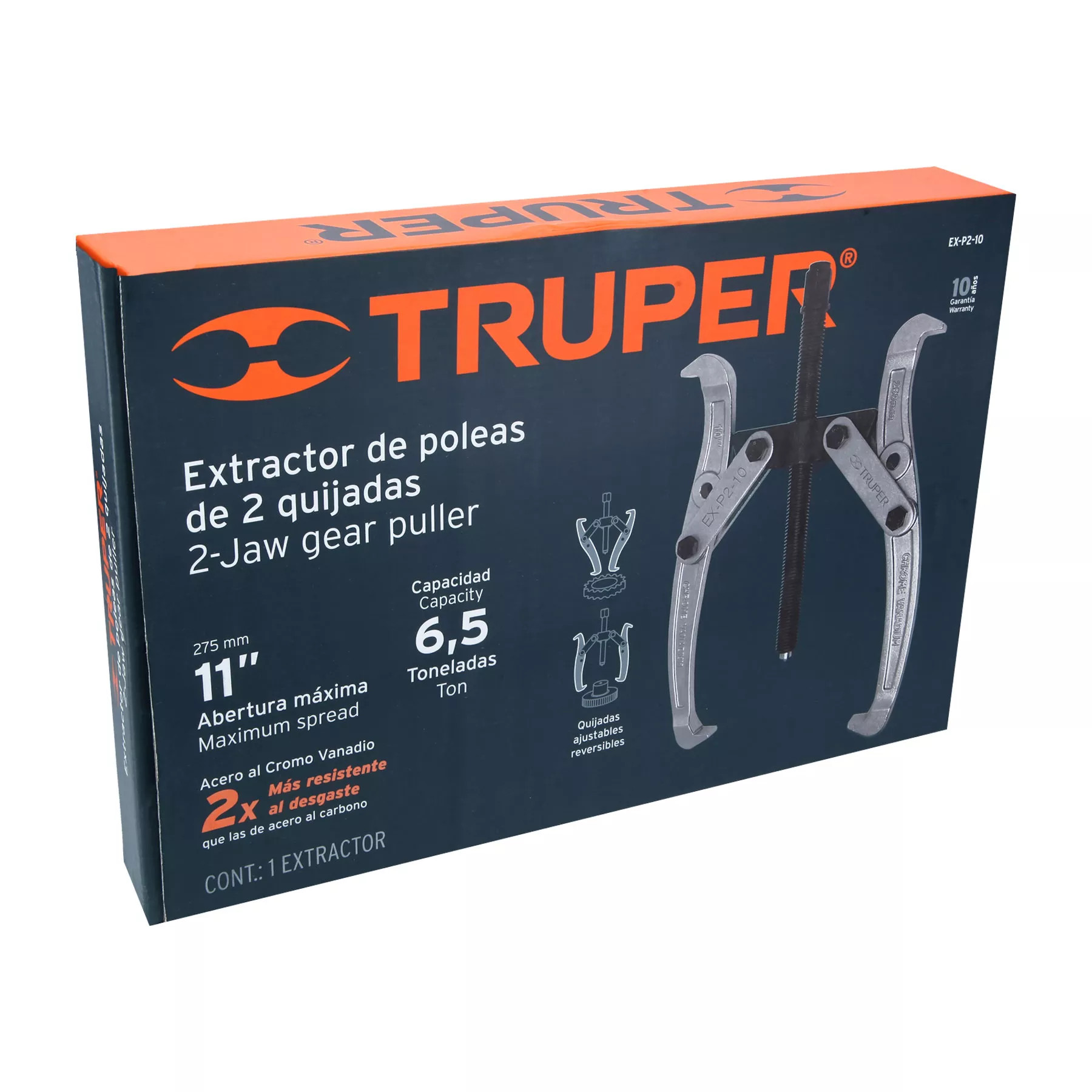 El Extractor de Poleas, 2 Quijadas, de 10 pulgadas de Truper es una herramienta esencial para el desmontaje eficiente de poleas, engranajes y cojinetes. Su diseño robusto y preciso garantiza una operación segura y sin esfuerzo para el usuario profesional o aficionado.
