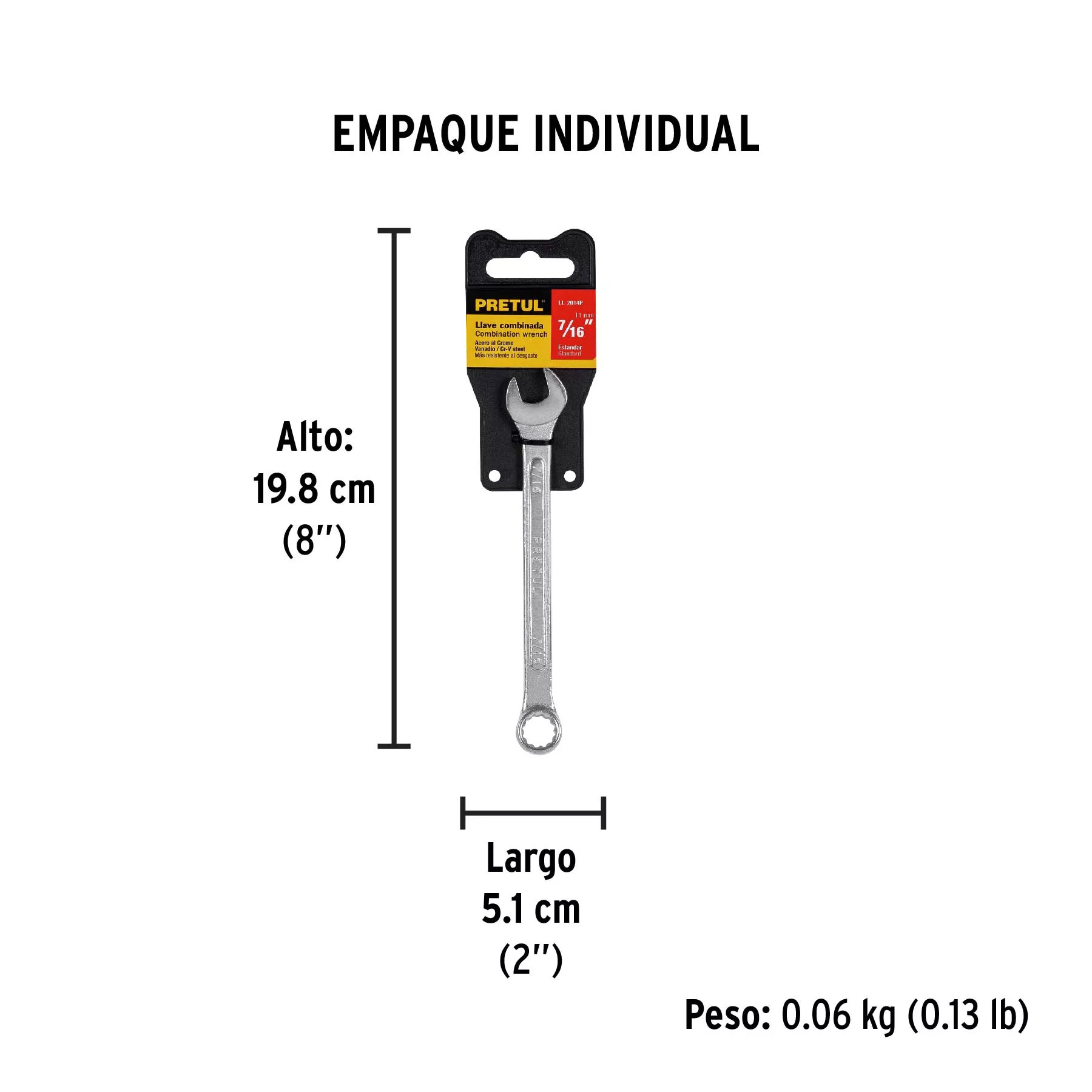 La Llave Combinada 7/16" X 150 Mm de Largo de la reconocida marca Pretul es una herramienta esencial para cualquier profesional de la construcción, mecánica o aficionados al bricolaje. Lo que la hace única es su diseño compacto y versátil, ideal para acceder a espacios reducidos sin sacrificar potencia ni funcionalidad. Esta llave está dirigida a aquellos que valoran la precisión y la eficacia en sus proyectos, resolviendo problemas de accesibilidad y manipulación en lugares estrechos, mejorando notablemente la eficiencia y facilitando el trabajo diario.