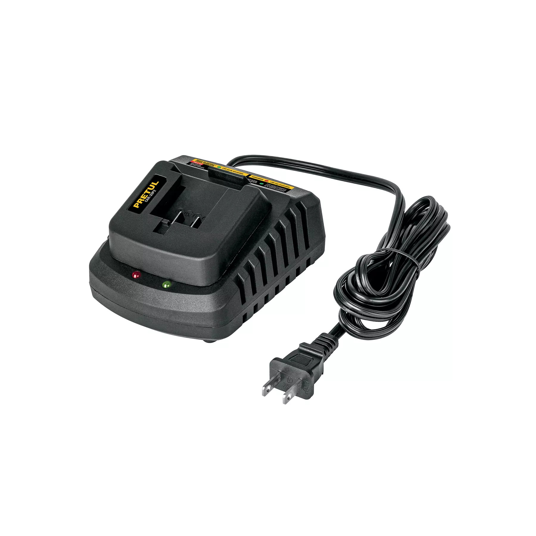 Este cargador trabaja con baterías de 20V modelos BAT-20PR y BAT-20P4, ofreciendo una recarga hasta 3 veces más rápida que modelos anteriores. Su construcción robusta y su capacidad de salida de 2.5 A aseguran una transferencia energética estable, mientras que su cable de 1.8 m brinda comodidad en cualquier entorno. Además, sus dimensiones compactas (4.56” x 2.55” x 3.93”) permiten transportarlo fácilmente.