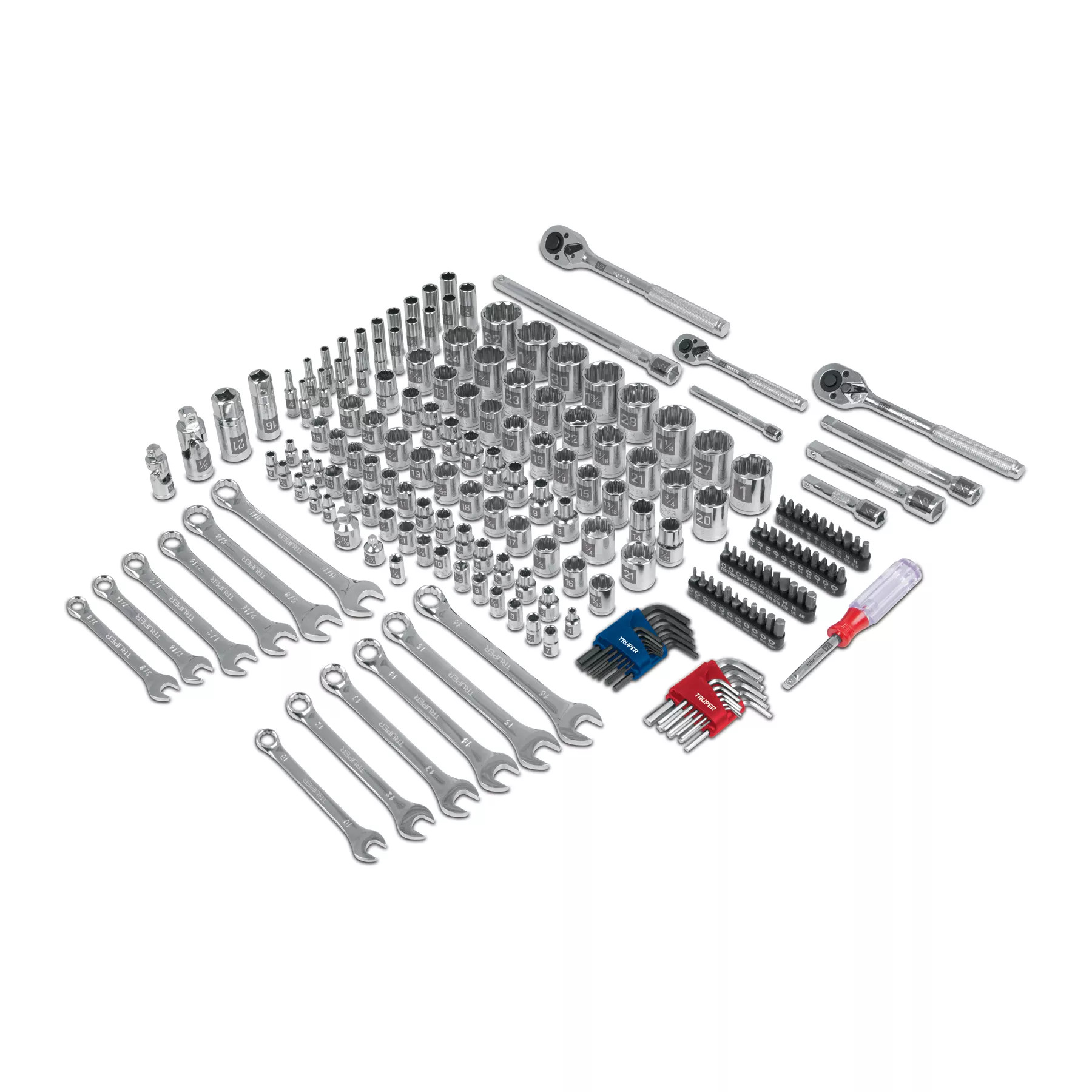 El Juego de 199 Herramientas de Truper es la elección ideal para mecánicos que buscan versatilidad y durabilidad en sus herramientas. Este set completo incluye medidas estándar (STD) y métricas (MM), diseñadas para abordar cualquier desafío de reparación y mantenimiento automotriz.