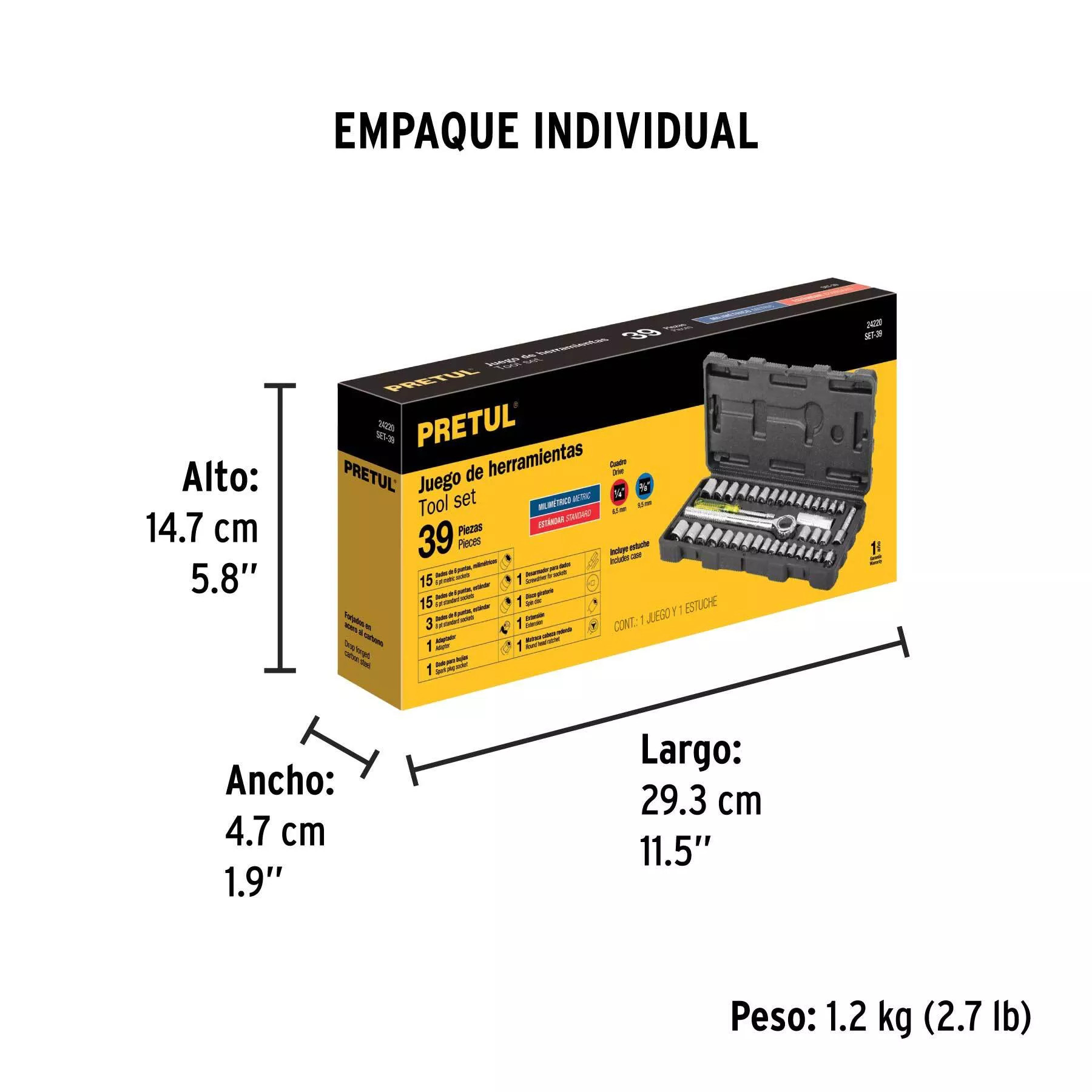 “Con el Juego de 39 Herramientas para Mecánico de Pretul, obtienes una combinación de calidad, funcionalidad y durabilidad, ideal para cualquier proyecto automotriz.”