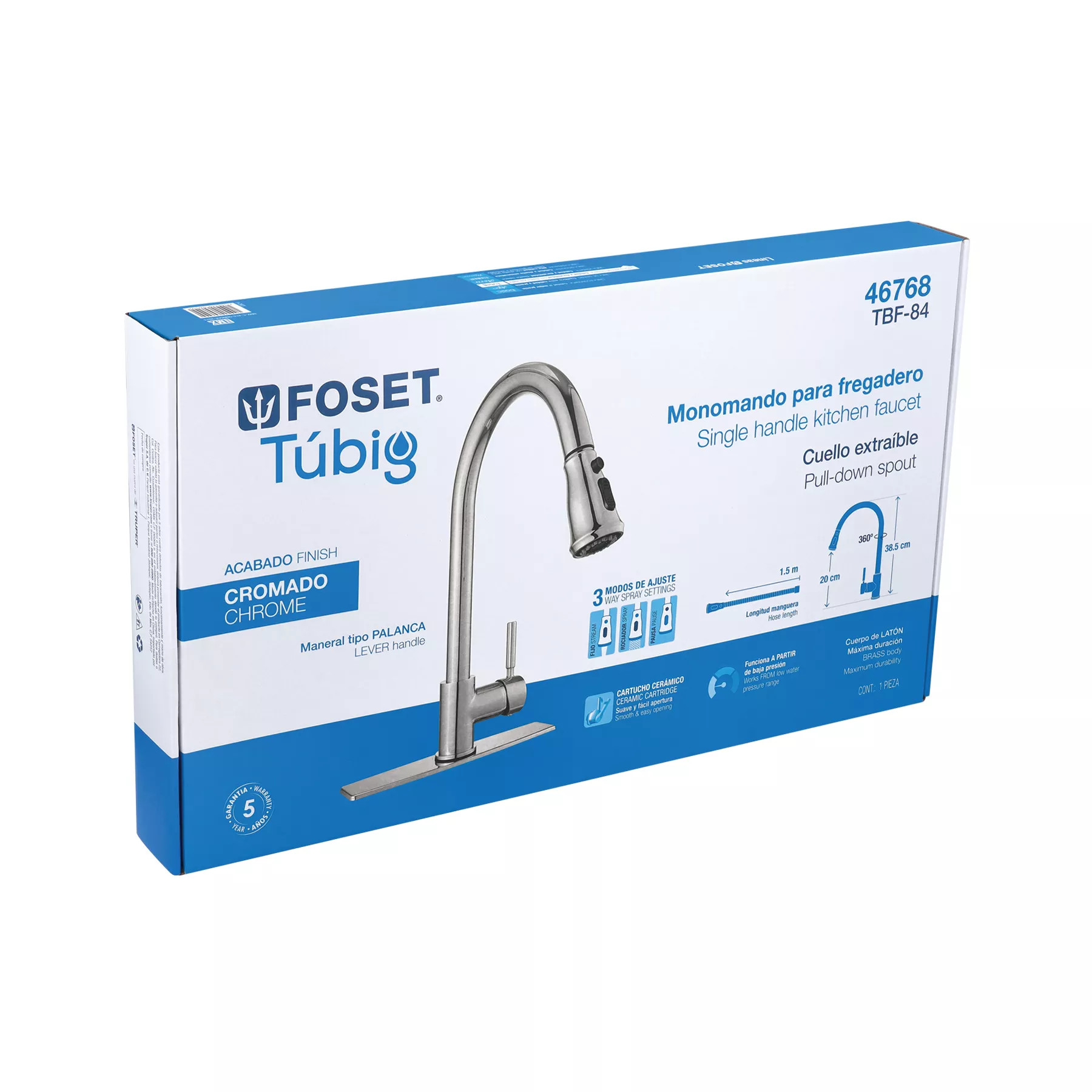 Descubre el Monomando para fregadero, cuello extraíble, cromo, TÚBIG de la marca Foset, una solución innovadora diseñada para quienes buscan funcionalidad y estilo en sus espacios de cocina. Este grifo es ideal tanto para hogares como para profesionales del sector de la construcción y remodelación, ofreciendo una respuesta eficaz a las necesidades diarias de lavado y enjuague. Su diseño ergonómico y moderno no solo mejora la estética de tu cocina, sino que también optimiza el uso del agua, lo que se traduce en un ahorro significativo y una mayor eficiencia en cada tarea.