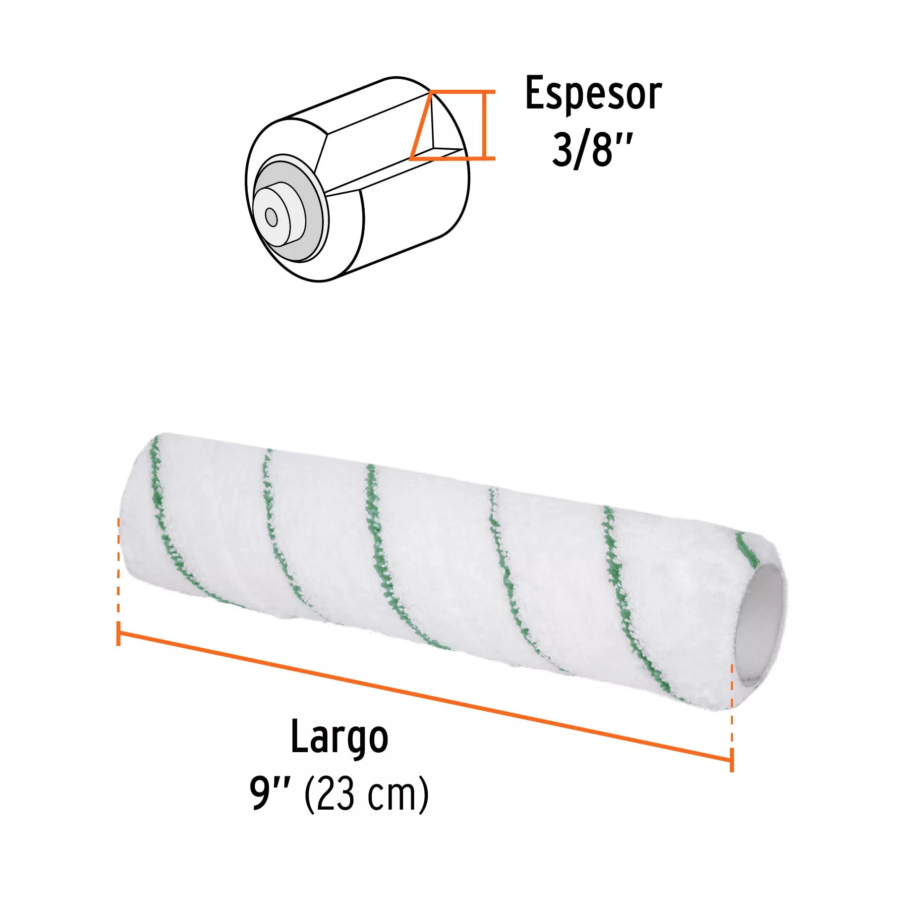- Tamaño 9x3/8": Perfecto para cubrir grandes áreas rápidamente, reduciendo el tiempo de trabajo.